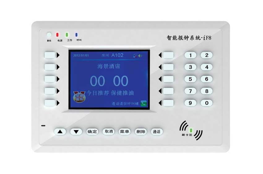 智能刷卡通话报钟器设备是富星通经历多年努力开发的高科技产品,是国内唯独一家拥有国家发明专利产品,它从2006年我公司推出的第一代报钟器IF1直至现在主流的第八代报钟器IF8,同样为了大众的需求,富星通不断的升级更新,屏幕变大彩屏,外观超薄、超高清、人性化操作,语音通话。