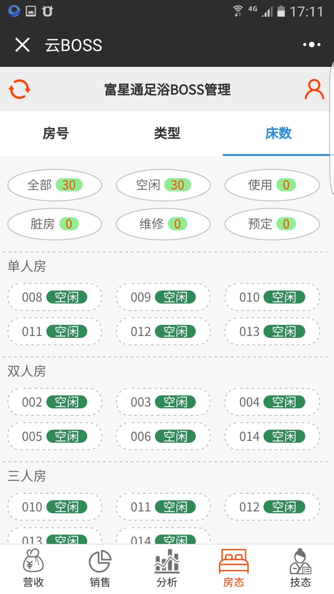 富星通公司的微信小程序是一款为健康休闲服务行业量 身定做的产品,给客户带来不一样的消费体 验,可以在线上进行技师预约、包厢预约、 会员充值,为店面提供精准的营销方案,使技师提高服务质量。报钟器可以在包房内方便快捷为客人和技师服务,包房一键语音通话,实时在线沟通,钟房排钟,安排技师,技师在房内点单下单,换房,换项目,包房内点酒水,点商品系统自动计算提成,刷卡上/下钟,播报上钟时间,到钟提醒,加钟提醒,预约提醒,包房清洁提醒,查询消费清单等功能业务。